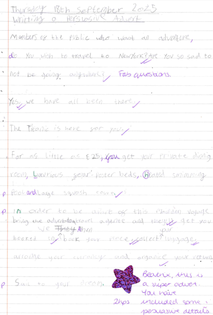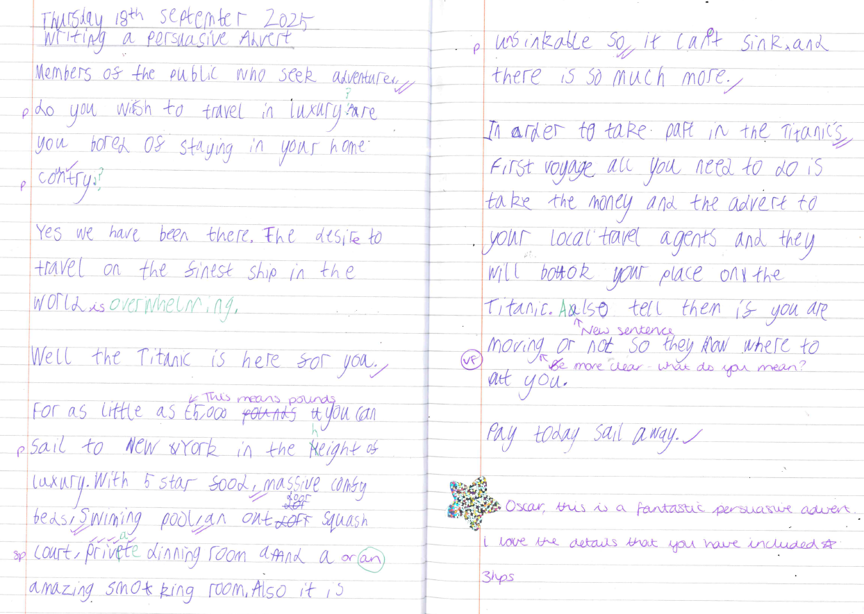 When reading our class book, The Titanic Detective Agency, the children have met characters based on real people who sailed on the ship. From this, they have created some excellent character descriptions as well as describing the setting on the morning that the Titanic left the dockyard.