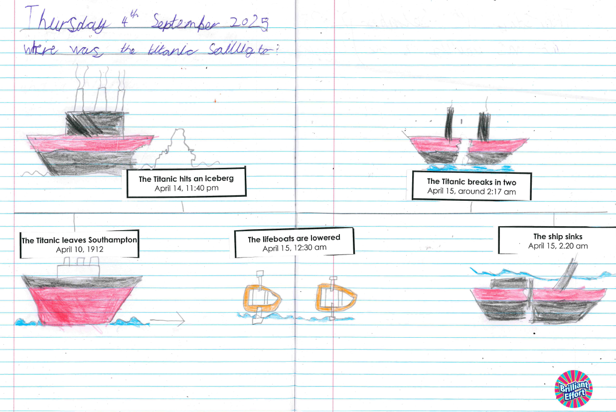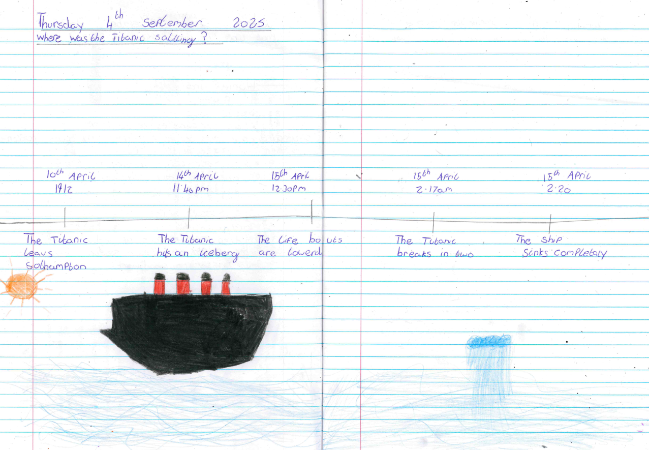 Furthermore, the children have explored the boat in detail, learning about the different areas for the different class of passenger as well as mapping the timeline of its final few hours above water. The children's enthusiasm for the topic has been great; they have shared many facts with us and have asked some excellent questions.
