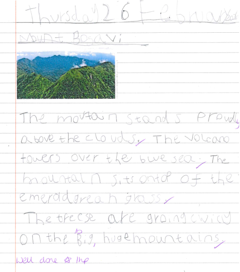 In English, we explored the wonderful book Ratty’s Big Adventure, which follows a mysterious creature from a secluded volcano crater as he ventures into the outside world for the very first time. The children were fascinated by Ratty—an enormous, woolly, vegetarian rat—and loved discovering how his journey teaches him that there is truly no place like home. The unit began with the children writing a setting description based on Mount Bosavi, using rich vocabulary to bring the rainforest and volcanic landscape to life. They then moved on to producing detailed descriptions of the animals living on Mount Bosavi before writing fantastic character descriptions of Ratty himself. The children also created story maps to help them retell Ratty’s Big Adventure in sequence and deepen their understanding of the plot.