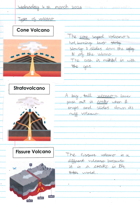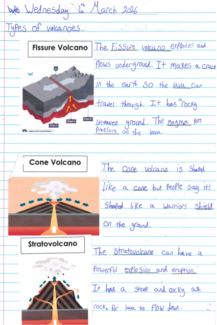 This term, the children have been fully immersed in our exciting Active Planet topic, learning all about the powerful natural disasters that shape our world. They explored a range of natural processes including tsunamis, floods, volcanoes and earthquakes, developing a strong understanding of how and why these occur. A particular highlight was investigating the different types of volcanoes—shield, stratovolcano, cinder cone and fissure—and comparing their shapes, eruption styles and locations. In our geography lessons, the children also located volcanoes on a world map, explored the Ring of Fire and identified the movement of tectonic plates across the globe. They were fascinated to discover how these plates shift beneath the Earth’s surface and how this movement can trigger dramatic changes above ground. Their curiosity and enthusiasm have shone through in discussions, written work and practical activities, and it has been wonderful to see them apply their knowledge with such confidence.